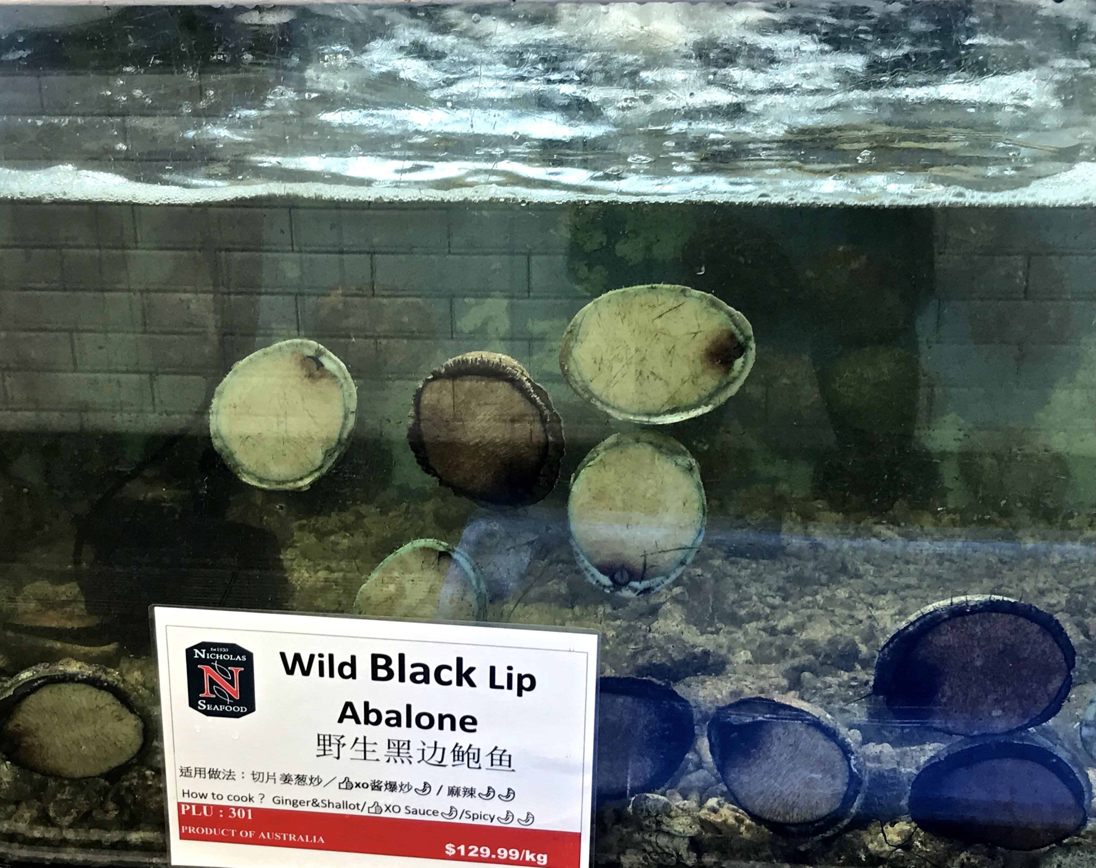 Frozen abalone at the Sydney Fish Market, 2018.