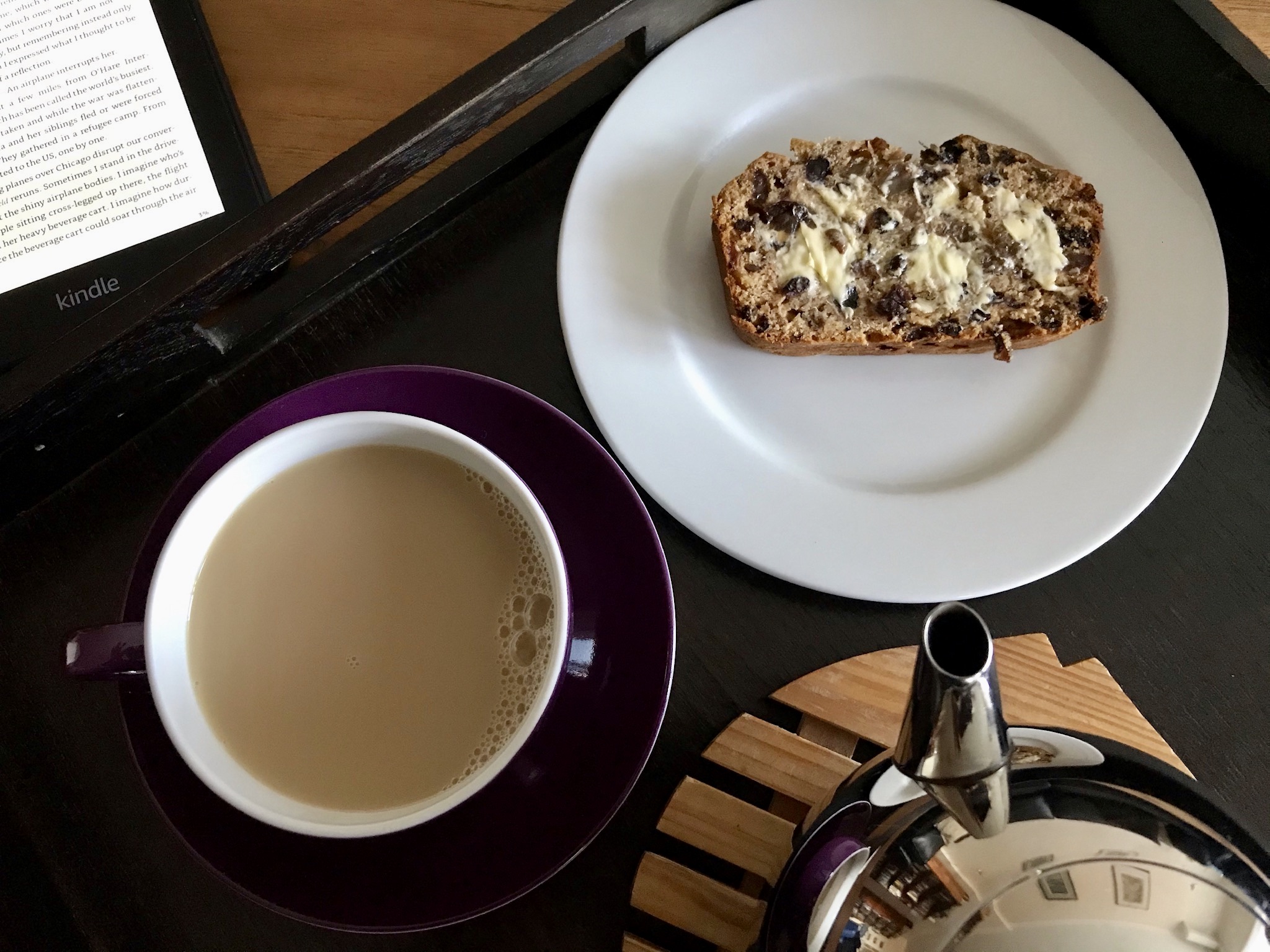 A slice of Irish tea loaf, a cup of tea, a good book. One of life’s—and lockdown’s—deep pleasures.