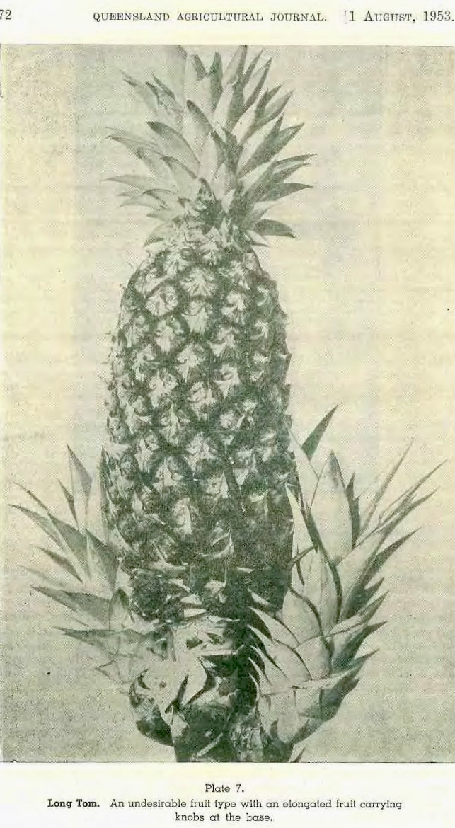 Pineapples were first introduced to Queensland by Lutheran missionaries who imported plants from India in 1838. Or maybe not. There’s evidence that the first Ananas comosus plants arrived in 1824 and five years later the Colonial Botanist counted thirty-four flourishing in Brisbane’s government garden.